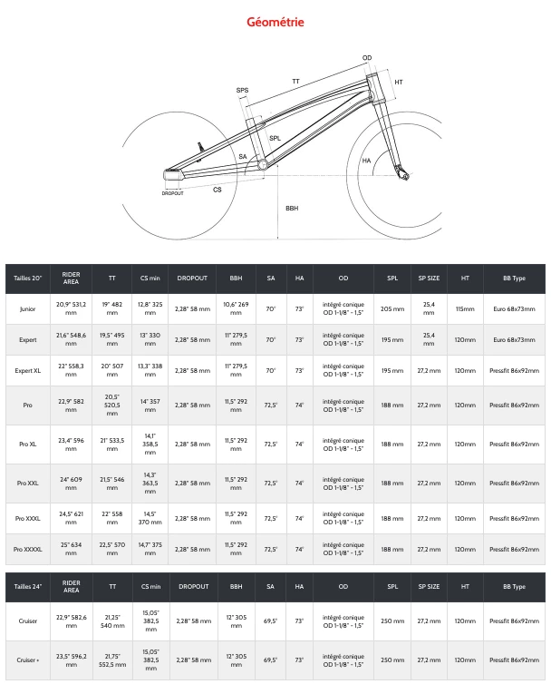 - Seat Tube « Big Base » (à partir de la taille Expert XL)