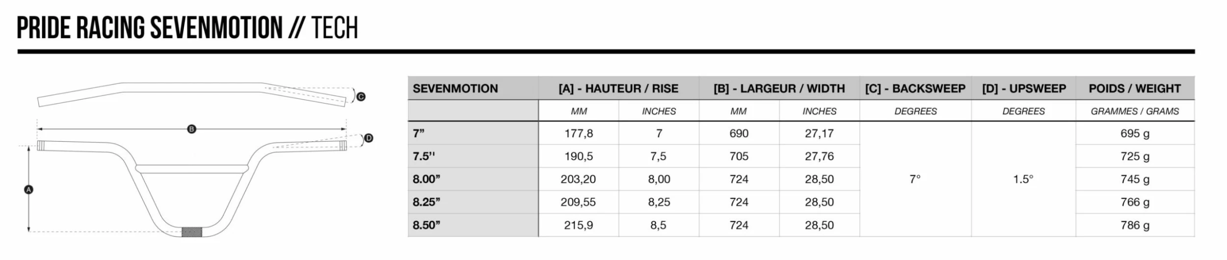 - Backsweep : 7°