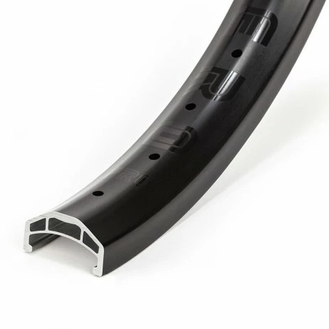 - Les flancs / côtés sont super fins et s’affinent sur la base pour plus de rigidité. Ils sont aussi droits, c’est à dire que c’est possible de rider avec des freins avec cette jante.