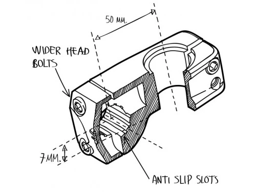 - Largeur serrage guidon : 50 mm